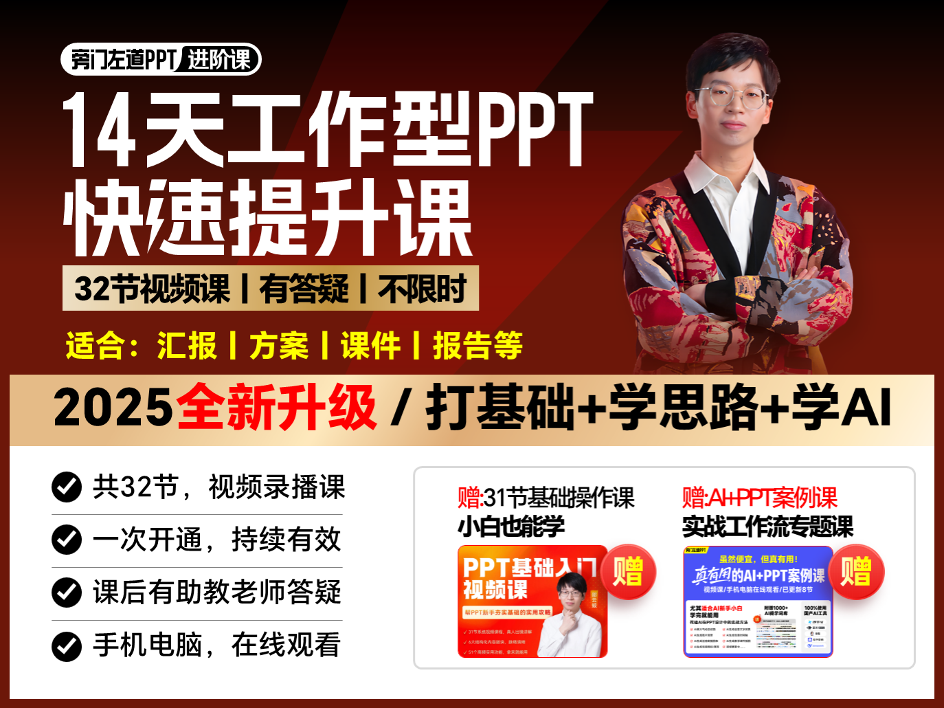 14天工作型PPT快速提升视频课【加赠真有用的AI+PPT案例课】汇报丨课件丨方案...
